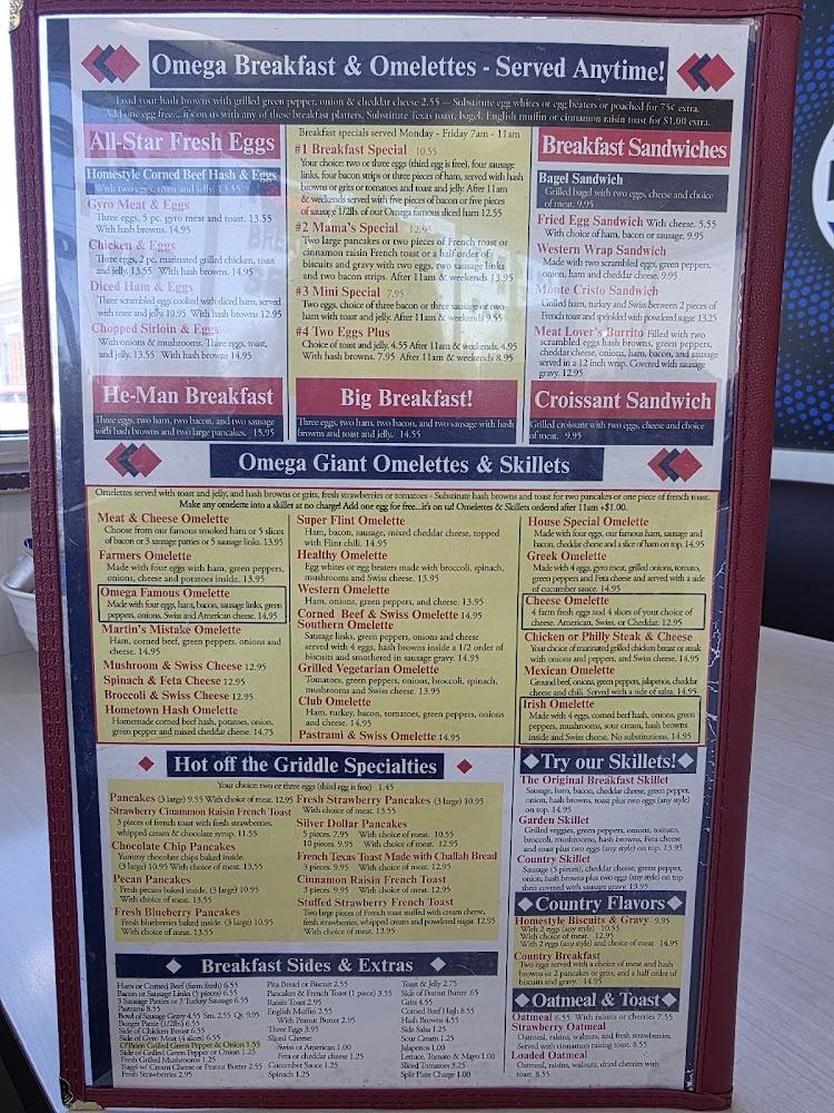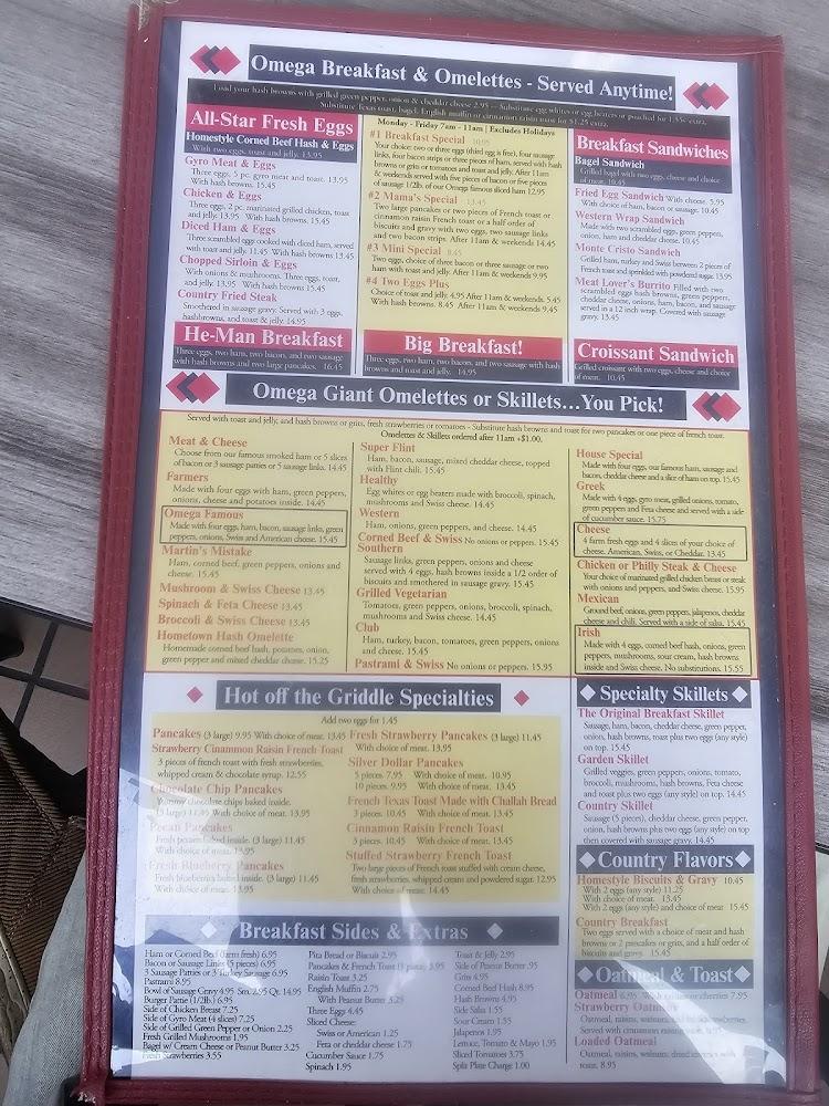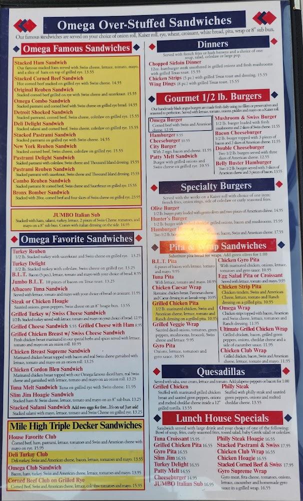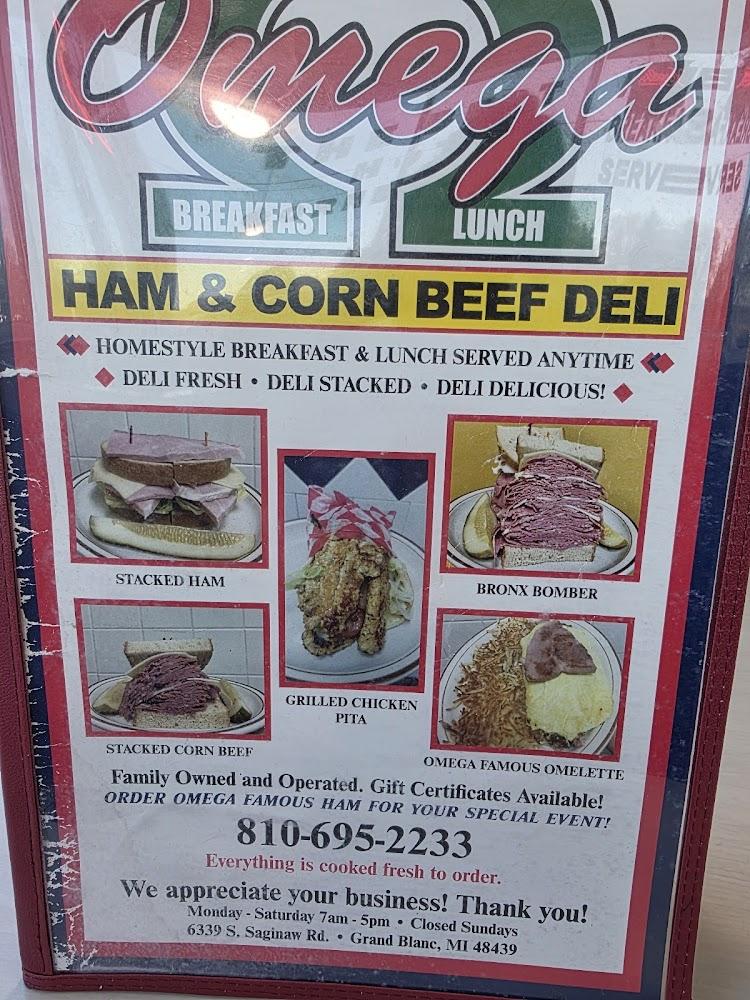 The menu at Omega Ham & Corn Beef Deli offers a delightful mix of classic American dishes. Breakfast is served all day, featuring favorites like large omelets, scrumptious skillets, and biscuits with gravy. There are numerous options for lunch, including mouthwatering deli sandwiches and renowned coney dogs.
